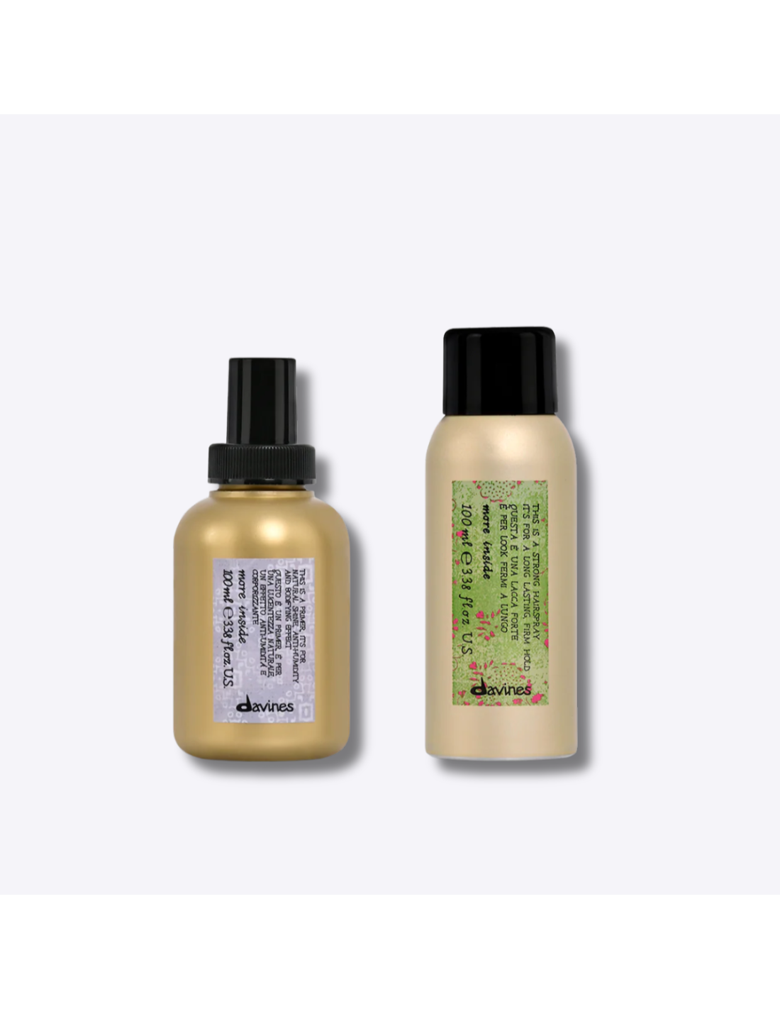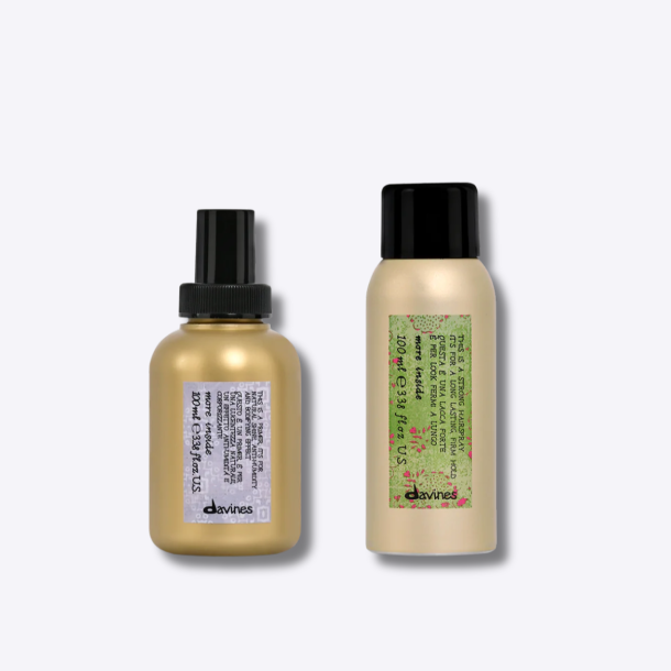 Perfecto para un peinado completo y duradero, este dúo profesional combina preparación y acabado en prácticos formatos de viaje. El primer protege el cabello del calor hasta 230 °C y lo prepara para el peinado, mientras que la laca ofrece una fijación fuerte, brillo y protección contra la humedad.